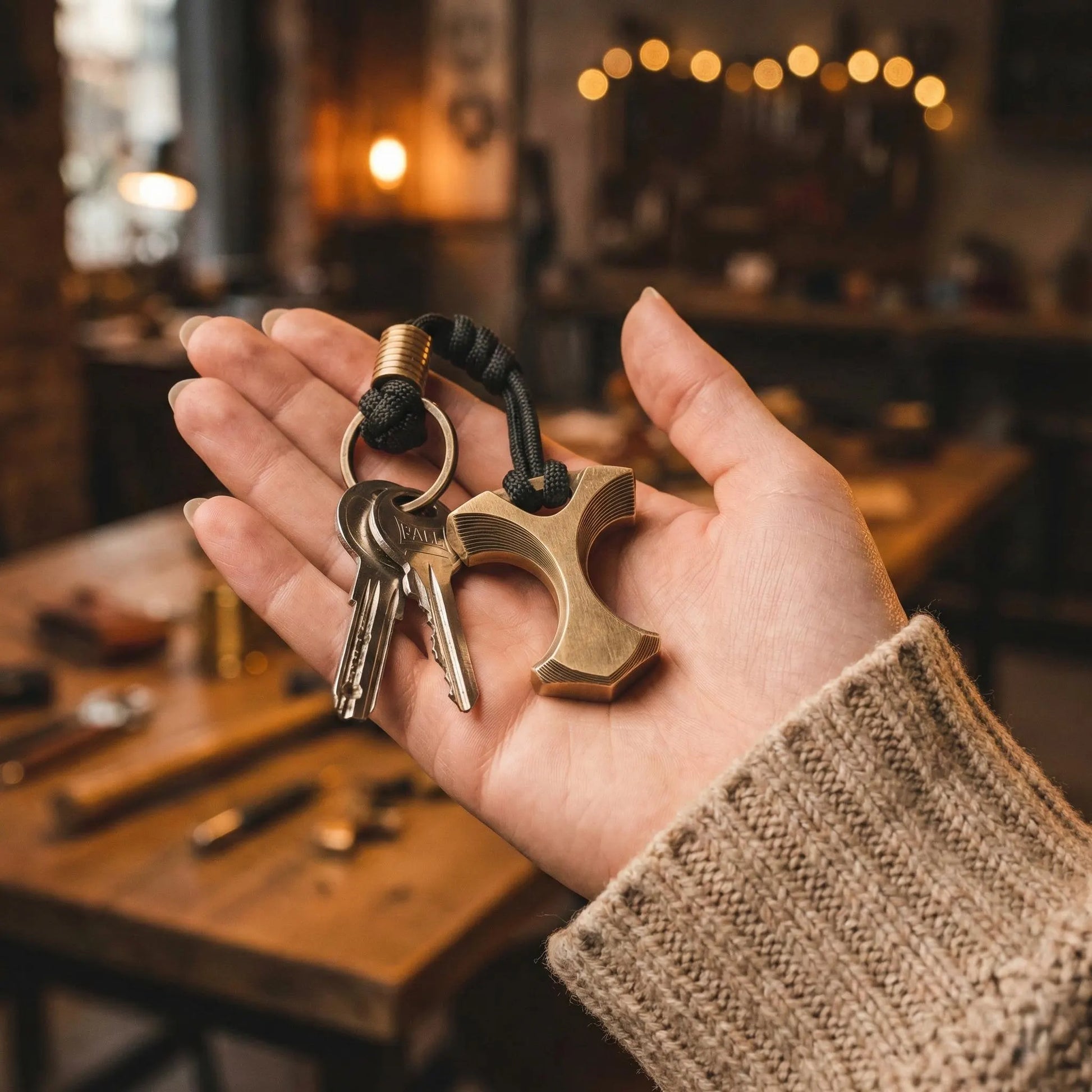 Hem estetiğe hem de işlevselliğe önem verenler için tasarlanan bu el yapımı aksesuar, masif pirincin endüstriyel gücü ile paracordun taktiksel dayanıklılığını bir araya getiriyor. İster stres atmak için bir fidget (stres giderme) aracı olarak kullanın, ister anahtarlarınızı düzenlemenin şık bir yolu olarak; bu parça ömür boyu dayanacak ve zamanla kendine has, büyüleyici bir patina kazanacak şekilde tasarlanmıştır.