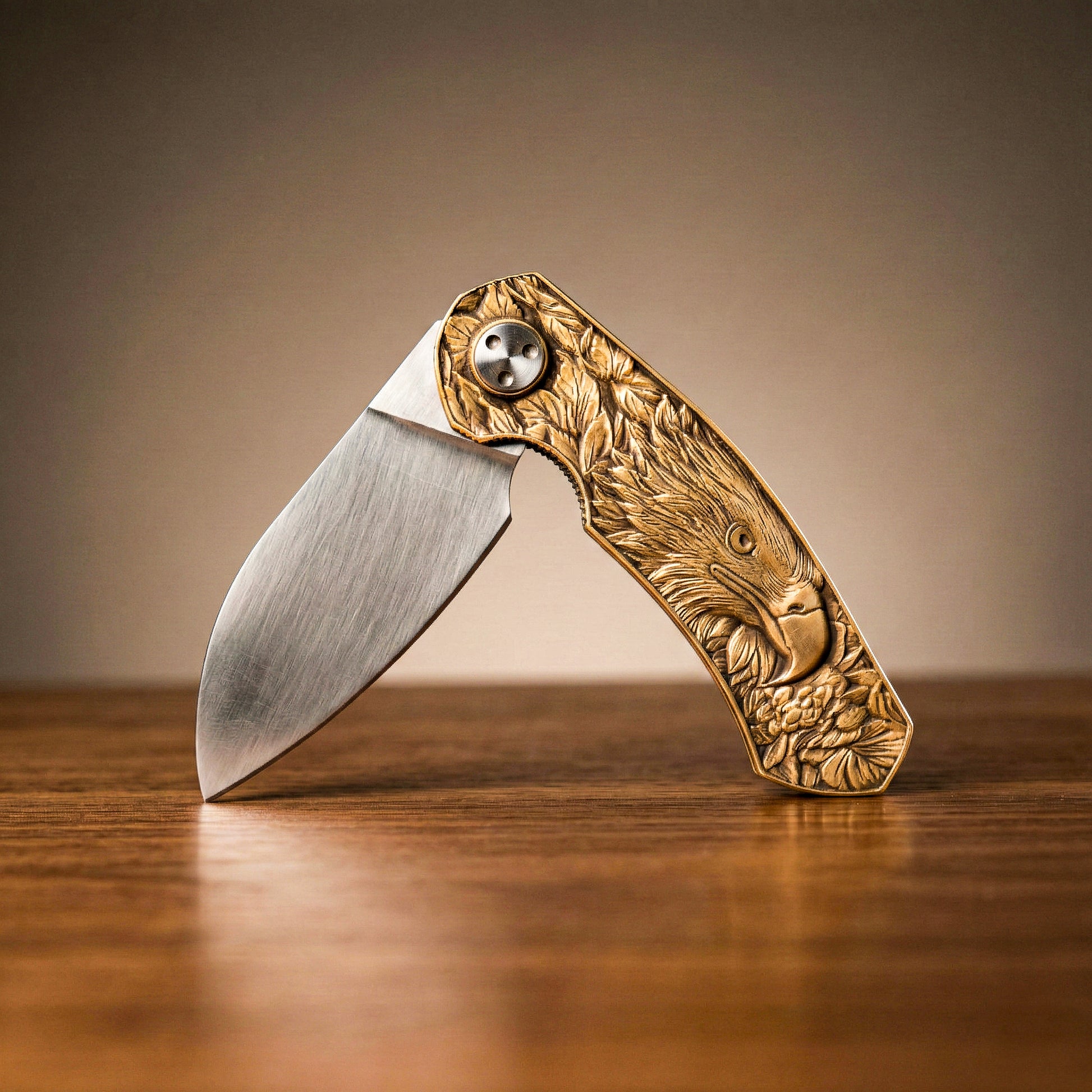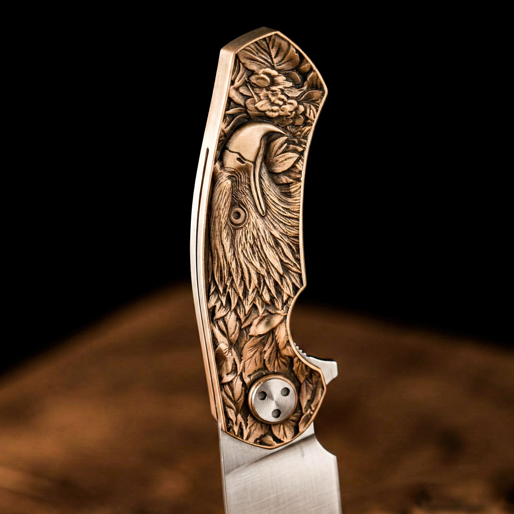 N690 çelik gövdesi; dayanıklılık, korozyon direnci ve uzun süreli performans için tercih edilen yüksek kaliteli bir malzemedir. Masif pirinçten üretilmiş 3D kabartma sap tasarımı ise ürüne derinlik, sıcak ton ve zamana yayılan doğal bir patina kazandırır.
